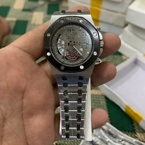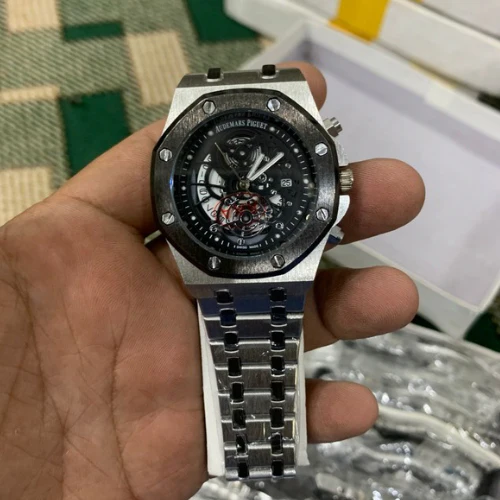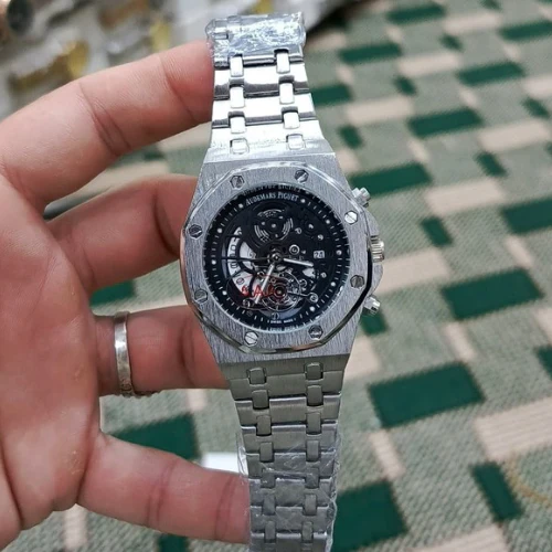 The Audemars Piguet Royal Oak Skeleton Dial Watch is a masterpiece of fine Swiss watchmaking. Featuring an open-worked skeleton dial that showcases the intricate movement, this iconic timepiece blends luxury craftsmanship with modern design. The robust stainless steel case and bracelet paired with its signature octagonal bezel and visible screws deliver a bold yet elegant look. Perfect for collectors and enthusiasts, this watch represents prestige, precision, and timeless style.