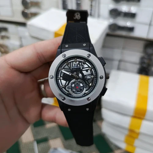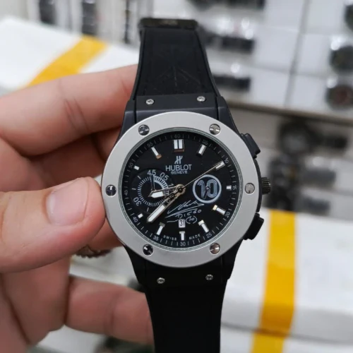 Experience the perfect blend of bold design and Swiss precision with the Hublot Big Bang Featuring a striking black dial, stainless steel bezel with signature H-screws, dual sub-dials, and a sleek black rubber strap, this timepiece embodies modern sophistication and durability. Designed for those who value both performance and style, it’s a statement accessory for every occasion.